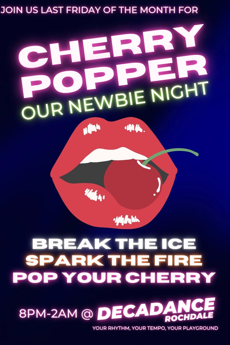 In October Cherry Popper newbie night will be on 24th October due to Halloween event on 31st. December date TBC