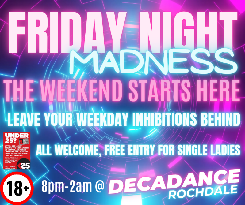 Join us on a Friday as DECADANCE opens its doors for a night like no other…. From the moment you step inside, the music, the lights, and the atmosphere tell you one thing: tonight, anything can happen.